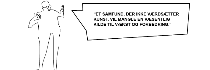 Et samfund, der ikke værdsætter kunst, vil mangle en væsentlig kilde til vækst og forbedring. Et sådant samfund uden kunst løber let risikoen for at forfalde til gentagelse og stagnation, da det mangler evnen til evolution og udvikling. Kunst og kultur er afgørende for at opretholde vores forbindelse til vores rødder, generere nye ideer og inspirere, samt lede os mod fremtiden, idet de fungerer som guider for vores samfund (Have, 2014). Potentialet er efter min overbevisning og erfaring stort, når vi taler om at udvikle forståelse af ledelse med inspiration fra kunsten.